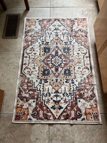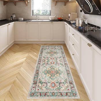 Promising review: "I recently purchased this rug, and it has truly transformed my kitchen space! The classic pattern and worn finish give a timeless look, blending perfectly with both modern and traditional decor. The luxurious velvet texture is soft and feels amazing underfoot, making it not only beautiful but also comfortable. What impressed me the most is how pet- and family-friendly this rug is. With kids and pets around, spills and messes are inevitable, but this rug handles them with ease. It’s machine washable, which makes cleaning incredibly convenient. I also love that it’s low-pile, so it fits seamlessly under furniture and doors without any issues. Pet hair and dander don’t get trapped, which is a huge plus for us! The non-slip TPR backing keeps the rug securely in place, so I never worry about it shifting or causing accidents. It's perfect for high-traffic areas like the kitchen. Plus, the sturdy edges and durable design mean this rug will last for years without shedding." —Gadget Lover