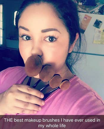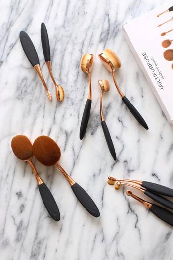 Promising review: "The heads of these brushes are the thickest and softest brushes I have ever felt in my entire life... The brushes applied and blended all my makeup FLAWLESSLY. I will never go back to a BeautyBlender again because those really absorb the product, and then you are stuck using more and more trying to cover your face!... Overall, I highly recommend these brushes to anyone looking to try something new, or someone who can't afford the Artis Brushes, as these are a perfect [alternative]. :)" —alexis johnson