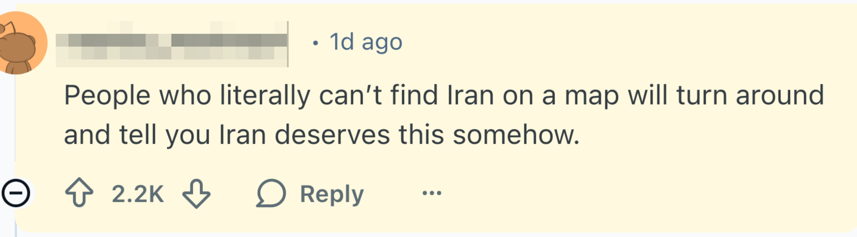 “People who literally can’t find Iran on a map will turn around and tell you Iran deserves this somehow.”