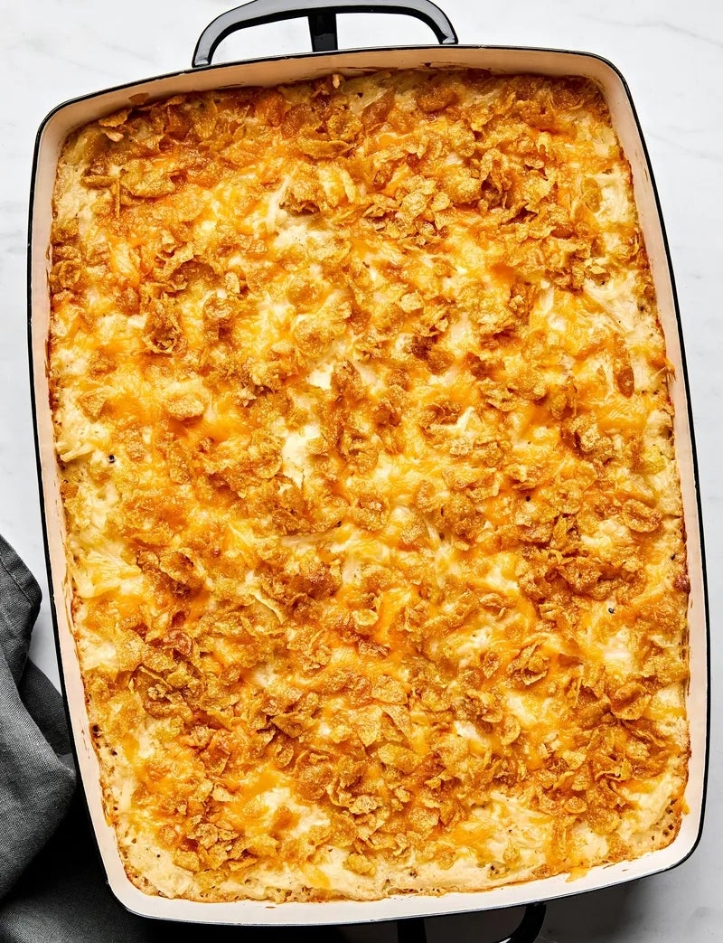Excuse the morbid name; this dish is surprisingly cheerful. Combine cornflakes, parmesan, and smashed up hash browns for a moreish meal to feed a crowd in a crunch.