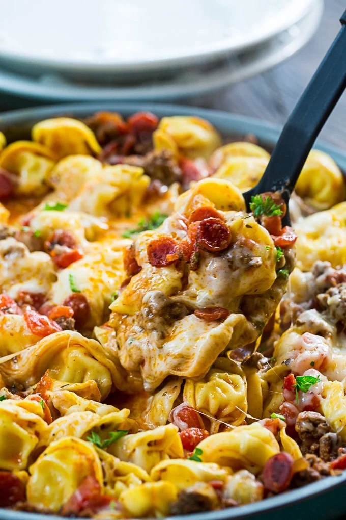 This meaty tortellini is another one-pot wonder. As a comforting meal, it's a convenient choice for limited kitchenware. Throw the pasta into the bubbling sauce and let everything cook together.