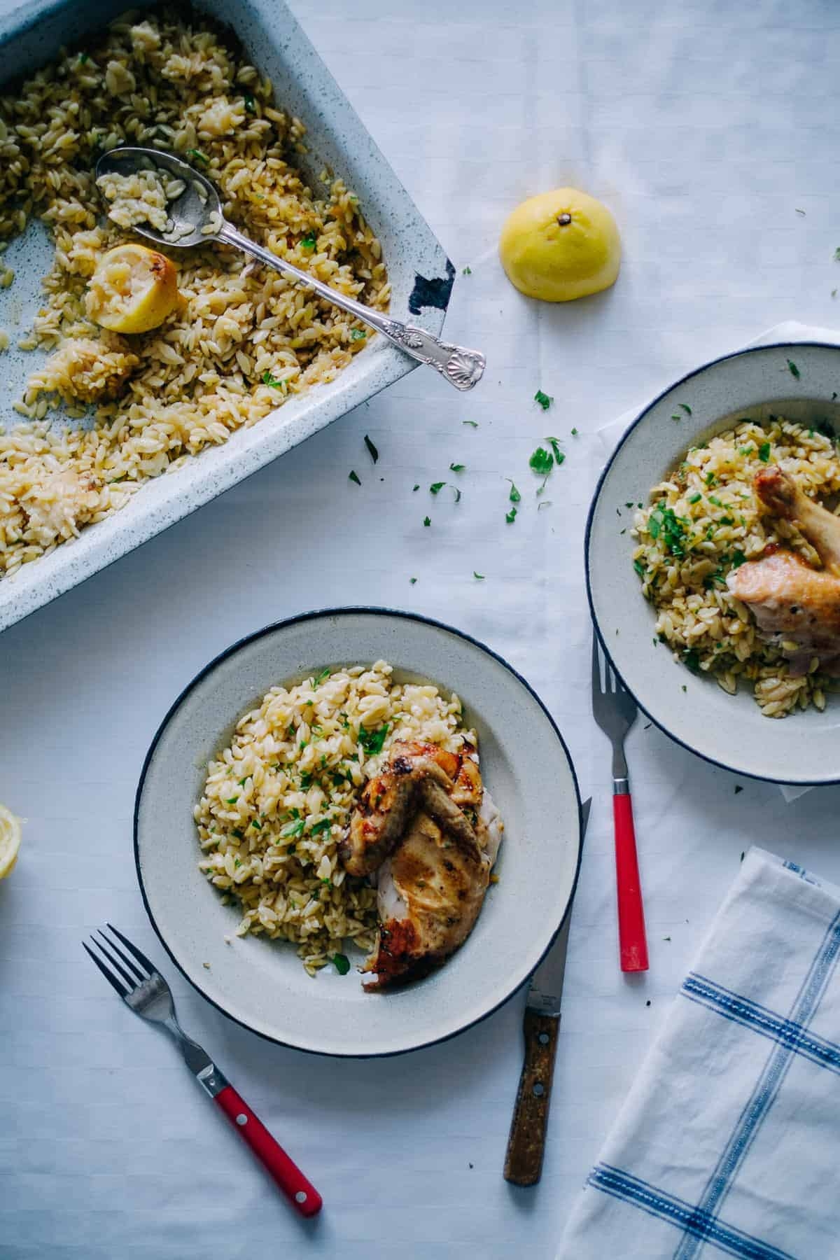 Greek culture is synonymous with large family gatherings, and this roast chicken with orzo doesn't disappoint. If your Airbnb has a large oven, A whole chicken is worth the wait.