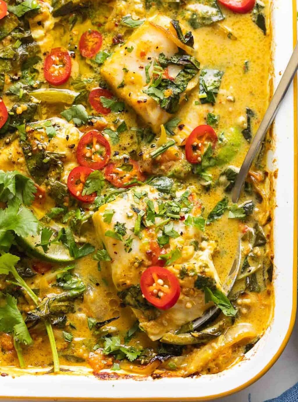 This baked coconut fish curry is seriously eye-catching. Aromatic and healthy, it's also cooked in a single dish, meaning minimal dirty pans. Win-win.