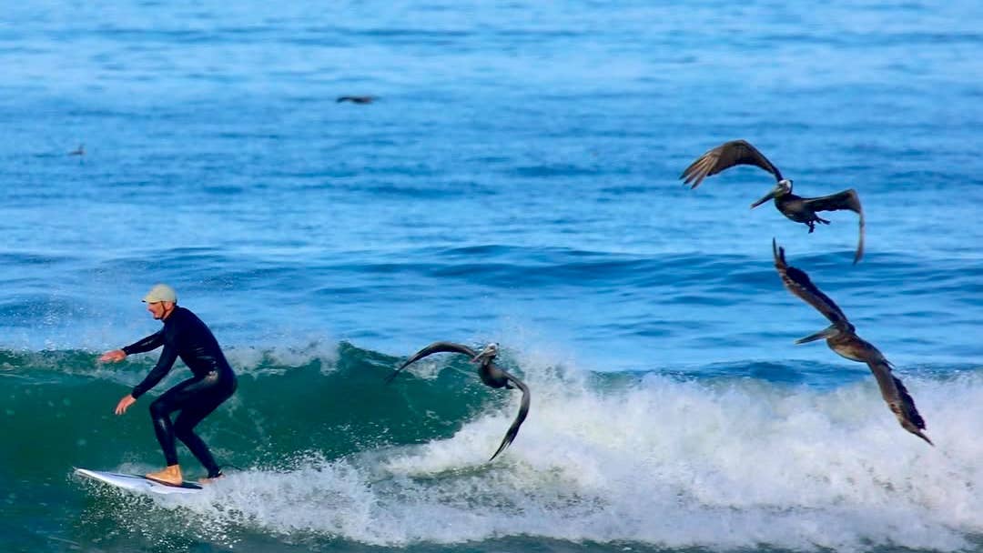 “Marauding pelicans attack surfer at Bolsa Chica! ‘They were all over me like I was a big fish.’ Justin was lucky to survive...”