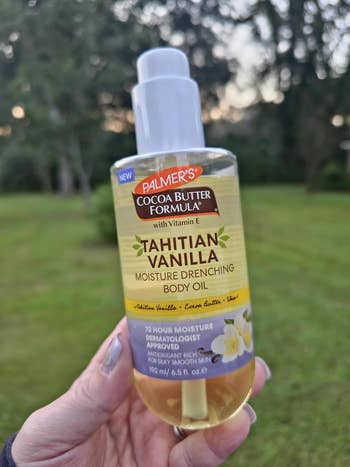 Promising review: "Babes, I've waited months for this oil lol. I saw a sneak peek by accident online and started emailing Palmer's in June, asking for a release date. I swear (haha). I'd check their website every morning, hoping it had dropped, and FINALLY I saw it on Amazon. It smells just like their vanilla lotion, only with a little bit more cocoa butter in the base, if that makes sense. The ingredients are great, and the texture is a thick, high-quality experience that leaves your skin feeling incredible. It's hands down my favorite oil from them. I am a dry skin GIRLY, and using this after the shower, I actually forgot to put on lotion before bed... for the first time in my life." —Kandice