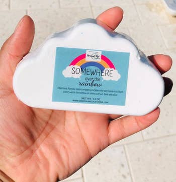 Promising review: "These bath bombs are so cute. There are four individually wrapped clouds inside a beautiful box. The packaging is very, very pretty, I could imagine these being really fun for kids to get them excited about a bath, or as a great gift for someone who loves unicorns and rainbows! They make a nice stream of rainbow bubbles as soon as placed in the water and fizz for about five minutes or so. All four clouds smells wonderful and the bath made my skin feel very soft from the shea butter." —Rahil Memon