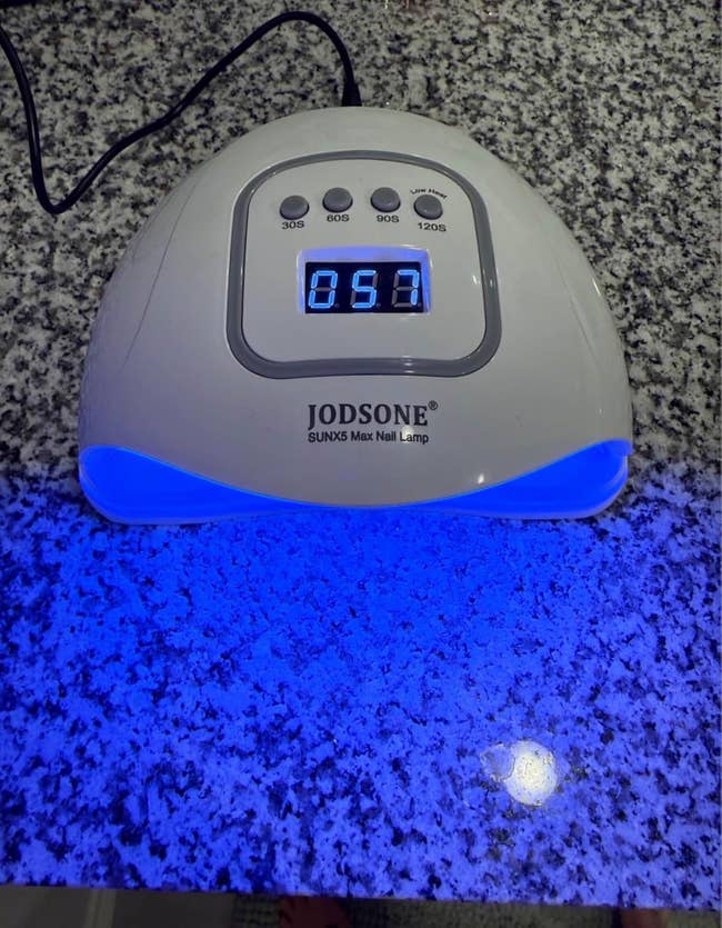 Promising review: "This nail lamp is fantastic. It has the perfect power to cure gel quickly, with an adjustable timer and a uniform light that doesn’t damage the nails. Plus, it’s compact, easy to use, and simple to clean. Since I started using it, my manicures last much longer and look professional. I definitely recommend it to anyone doing nails at home or in a salon.” —Amabilis Baños Ramos