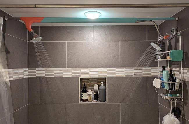 Promising review: "This is a high-quality product that’s straightforward to install. The water pressure is incredible! It’s like a brand-new shower. You can adjust which showerhead the water comes out of individually or both simultaneously. It’s a game changer for our kids, so they don’t fight over the water anymore!" —Taylor