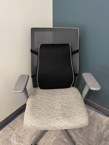 Promising review: "Excellent support for long work hours. Great lumbar support pillow! It provides firm yet comfortable lower back support and has significantly improved my posture during long hours at my desk. It fits well on both my office and home chairs and stays in place. Highly recommend for added comfort and back relief." —Tiksie
