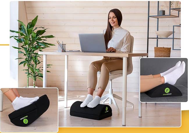 Promising review: "Perfect footrest, soft and comfortable. I work 10-hour days in my home office and this keeps me in my chair and on the job. Prior to purchasing this footrest, I experienced foot discomfort while sitting at my desk. It has been eliminated." —Katie Vento