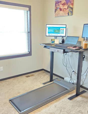 Promising review: "I love this walking pad and am so pleased with this purchase. I work from home and wanted a walking pad for under my desk to get my steps in during the day. This walking pad has different speed settings and is very quiet, so it does not interfere with the workday and cannot be heard during work calls or meetings! It folds up for easy storage and is space-saving. This product is definitely worth the investment, and I have recommended it to many friends." —Leah
