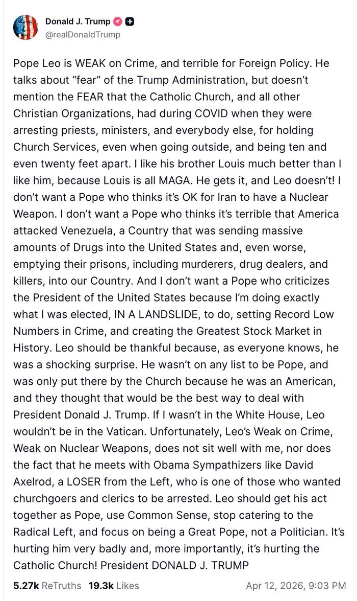 SHOCKER! Conservatives Are Mad As H*ll Over The Pope's Response To Trump's Truth Social Rant