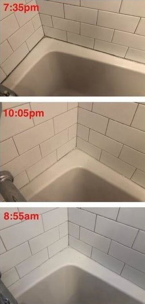 Promising review: "You guys. I’m embarrassed to even show you this. The grout around our tub was DISGUSTING. It was never caulked right and it got gross very quickly. I would scrub. The cleaning lady would scrub. It would get worse. Well, I came across this in a BuzzFeed list, and this stuff made me curious. I don’t know why it doesn’t have 10,000 good reviews. Seriously. All I did was squeeze it on and walk away. I let it sit overnight. Check this out. Buy it. Like today." —KarynB