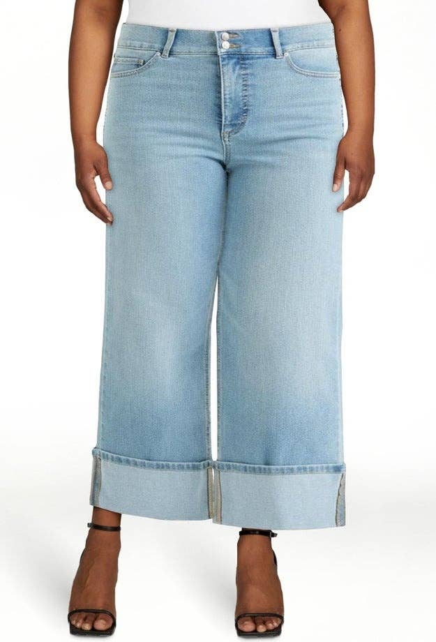 Promising review: "Someone told me about Sophia V wide crop high rise jeans and I'm so grateful that they did! I absolutely love them! I purchased them in the dark denim as well as light denim! They are very stylish and look really good on me! I'm very curvy and I'm not a tall lady at all, 5' 3. I don't know yet if they wash well as I just got them, but for now I think they are a winner!! Highly recommend." —splchicago