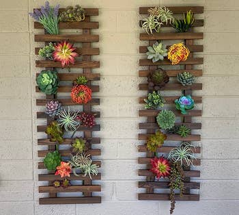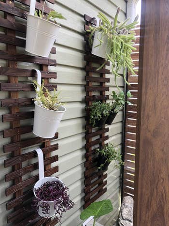 Promising review: "I have a small balcony with two entrances, so not a lot of available floor space. By making a vertical garden, I can have my fresh herbs without taking up valuable real estate. It goes on a wall by the door that wouldn't have been used otherwise. Plus, it looks so pretty! It was very easy to install. With the addition of the hanging planters (sold separately), I love that I can easily take my herbs down to water them or bring them into my kitchen to cook with." —Luna