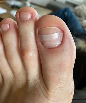 Promising review: "I used to be in sports all through middle and high school, and it really messed up my left foot overall, especially my big toe. I was always embarrassed by my big toe during the summer that I’d put a bandage over it to make it seem like it was injured. Finding someone to fix your toe is expensive, and I don’t have that kind of money at the moment. Started doing research on ways to do so, and this one was the best way. It does take some practice, but once attached, it should not move. Your toes will hurt for a day. Like a dense pain. Not sharp. I saw a difference in about two weeks. I’m a month in on the most severe toe, and no more ingrown toenail!" —Sandra L.