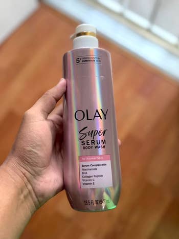 Promising review: "I recently tried the Olay Super Serum Body Wash, and I am absolutely in love with it! The formula is incredibly hydrating, leaving my skin feeling soft and smooth after every use. It lathers beautifully and has a lovely, light fragrance that isn't overpowering. After just a few uses, I noticed my skin looked more radiant and felt deeply moisturized. The addition of serums in the body wash is a game changer. My skin feels nourished, and I no longer need to apply lotion right after showering. Highly recommend this to anyone looking for a luxurious, skin-loving body wash!" —Darina
