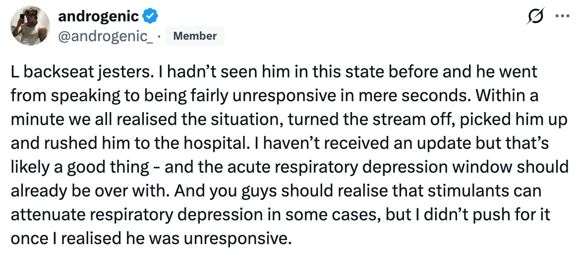 Prior to reports of his hospitalization, the influencer could be seen telling a woman in a shopping mall that he was “f*cking destroyed” before struggling to sit up in a bar.