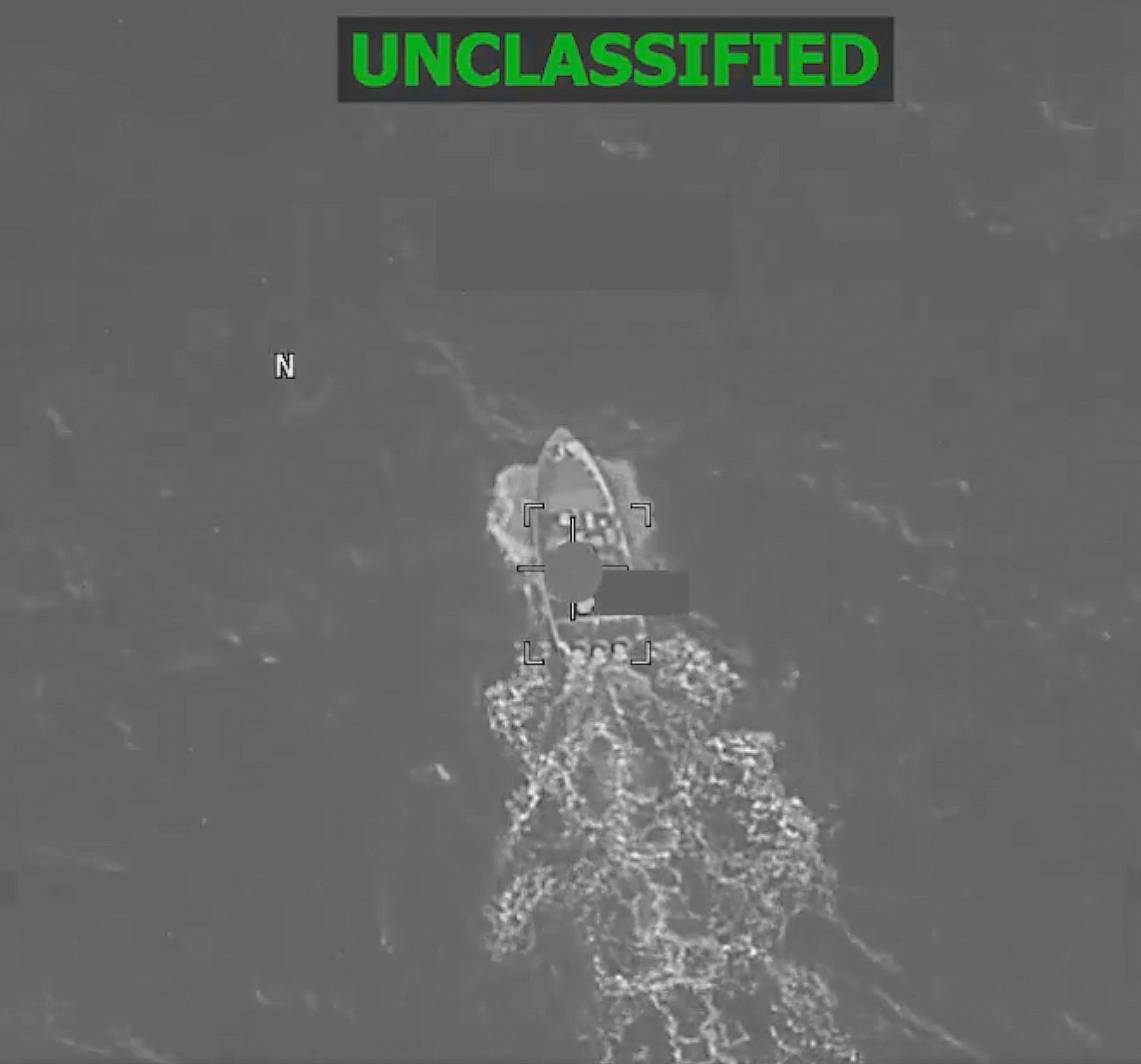 It shared a video of an air strike appearing to tear into the vessel, which burst into flames.