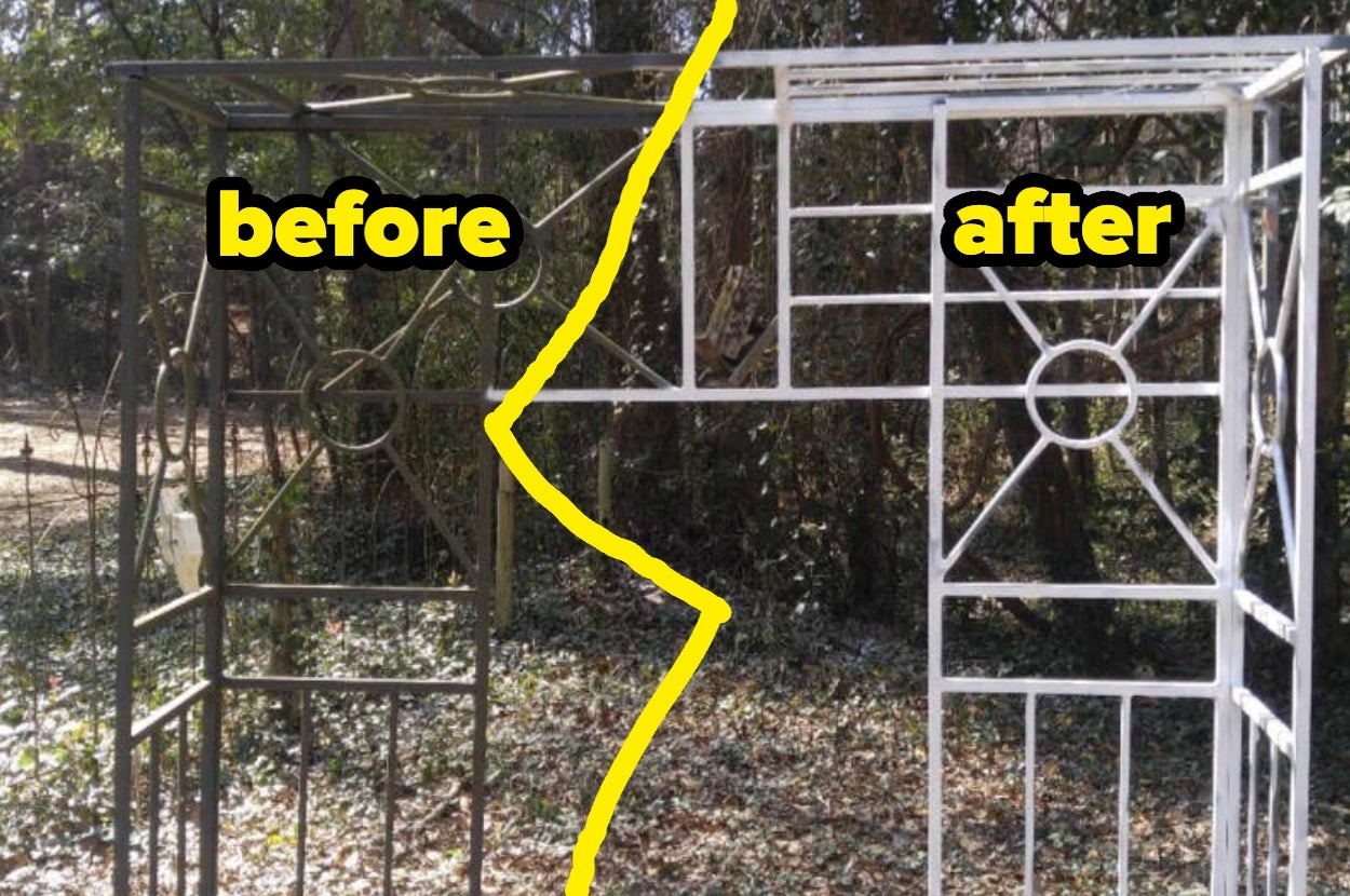 Promising review: "I used this Gloss White to paint an old garden arch, gate and a trellis over a garden bench. It was just a dreary, tired black; the white changed the look and feel instantly. Definitely get the trigger grip accessory if your project takes more than one can — mine was eight cans and that grip was a great idea.The paint is a true bright white with a bit of a shine after it dries. I did have to do two full coats to completely cover the original black wrought iron, but there's no color bleed through as a result." —Dogs & Horses