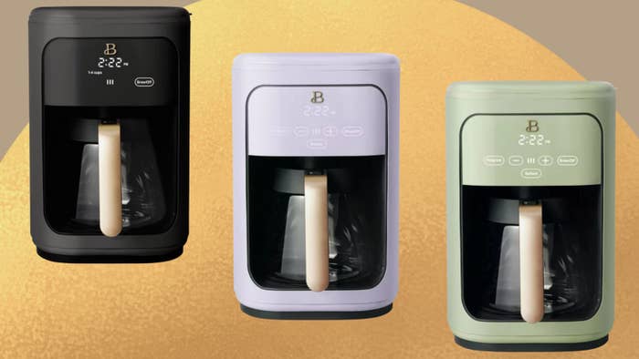 We hope you love our recommendations! While every product is independently chosen by our editors, BuzzFeed and our publishing partners may collect a share of sales or other compensation from the links on this page. You can read more about how our affiliate partnerships work in our Editorial Standards & Ethics Guide. This is for anyone who wants their kitchen to look straight out of HGTV — and it comes from Drew Barrymore’s Beautiful brand. More than any other kitchen appliance I own, this baby steals the show and makes everyone drool. (And I have a mini Baby Yoda-shaped frying pan, so this coffeepot has some stiff competition.) Its rectangular form and rounded edges are simply pleasing to the eye — and at around a foot tall, it can fit into little nooks or under cabinets, creating an adorable home cafe moment. You can program the pot up to 24 hours before brewing, and make smaller batches of coffee (one to four cups) with a special setting. “As a mother, I LOVE and NEED my morning coffee but my coffee maker was such a big clunky black eyesore in my light and airy kitchen. When I saw this coffeemaker in the green and gold I instantly fell in love! It matches my kitchen perfectly! It was easy to program and I really like how you can pour the water in from the left or right side without spilling on the countertops. I also really like the fact that there is a carbon filter. It may just be in my head, but I think the coffee tastes better. So not only is it aesthetically pleasing, it’s easily programmable and makes a great cup o’ joe.” —Melissa “Absolutely love how this coffee pot looks and functions. It comes with a water filter which is amazing for the longevity of the coffee pot. Easy to use, brews quickly, keeps warm up to 4 hours and looks beautiful.” —Brittney “OMG this ... [coffee] maker is exactly this BEAUTIFUL. ... Who needs to order outside you just became your own Barista!” —Edith “Like it’s name, it looks absolutely beautiful!! In love with my new coffee maker. It’s elegant, haven’t had any condensation issues like others reviewed. Easy to use. Really like that it’s touch screen.” —Yamir Reviews for this post have been edited for length and/or clarity.