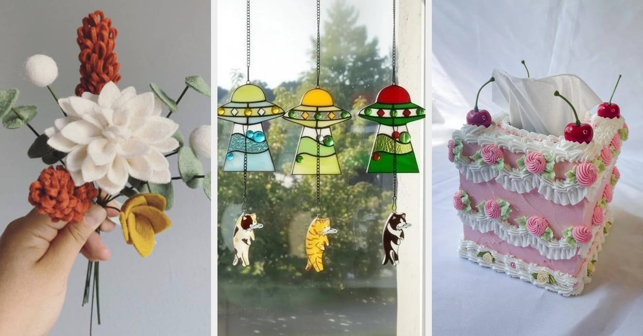 We hope you love our recommendations! While every product is independently chosen by our editors, BuzzFeed and our publishing partners may collect a share of sales or other compensation from the links on this page. You can read more about how our affiliate partnerships work in our Editorial Standards & Ethics Guide. It’s about to get oddly chic up in your house. For others, it's the whole plot, and honestly, I get it. When your home's look is everything to you, the little details matter most: the uniqueness of a mirror, the shape of a lamp, the perfect floor pillow, and the storage piece that doesn't look like sad storage. This is exactly where Etsy tends to shine. It's full of home finds that have personality, charm, and a point of view, plus plenty of pieces that make life easier while also giving your space a little more character. So whether you're in the mood for something pretty, practical, or a little bit of both, these are the finds worthy of a spot in your very aesthetically sensitive home. Glass Dysnasty is a small business that makes bespoke glass suncatchers. Promising review: "Love this piece. Having it on my kitchen window makes me so happy. Got one for a gift for another cat lover in my life." —Etsy Buyer Get it from Glass Dynasty for $34.94+ (available in three customization options). Cake Shake Co. is a woman-owned small business based in Austin, Texas, that makes functional products that look like vintage cakes. Promising review: "HOW IS IT EVEN CUTER IN PERSON!?!??! This is seriously so well-made and ADORABLE, I'm obsessed. If you're on the fence, buy it!!!!" —Jenna "It’s so pretty!!! Absolutely love it, no regrets. Tested it on a Puffs tissue box and a generic brand. Fit both. Thank you!" —Autumn Get it from Cake Shake Co. for $63.75+ (available in square or rectangle). Kristin Douglas ART is a woman-owned small business based in Salt Lake, Utah, that focuses on creating products that encourage individuals and families to get out and explore. My colleague Elizabeth Lilly has the United States scratch-off version of this map and LOVES it! Promising review: "My mother absolutely loved this as a gift. She loved the look of it, the magnetic frame was more than it appeared at first glance, and is perfect for the use, and she is excited to start scratching off her travels...bringing up years of good memories." —Lisa Lansink Get it from Kristin Douglas ART for $31.50+ (available in two colors and with or without a frame). Frame Mavens is a woman-owned small business based in Springfield, Ohio that makes photo frames. I fell in love with these frames the very first time I saw them on Etsy, so I was really excited when I finally got the opportunity to order one. My toddler son's passport photo is extremely cute, so much so that I saved the extra print and decided to get a custom cut from Frame Mavens in the cornflower blue color. They were quick to respond to the custom cut request, and my order was made and shipped quickly. I added it to a gallery wall that's a little too full of gaudy (in a good way) gilted frames and minimalist black frames, and it really helped break it up and add some color. Promising review: "Beautiful monochromatic frame! Perfect for a framed 4x6 postcard, which the owners graciously did a custom cut for." —Violet Get it from Frame Mavens for $70 (available in nine colors). Honey and Ivy is a small business based in Portland, Oregon, that specializes in 3D-printed homeware design. This table lamp is sustainably made with non-toxic, bio-based thermoplastic that is 100% compostable. Promising review: "I saw these on a friend’s Instagram who lives in Portland, and I just fell in love. I wanted a little something for my desk to give me some comforting light. It has been such a wonderful addition to my desk, and everyone who comes by says how homey it looks now. I can’t wait to get another for my home later this year when I move." —Ariana Khan Get it from Honey and Ivy for $64.99 (available in three colors). Candle Lume is a small business based in Toronto, Canada, that specializes in custom candles in 25 different scents. Promising review: "This candle is soooo adorable, I love it! looks like the picture, exactly what I envisioned, and the perfect size :)" —Hannah Tran Mad Magic is a small business based in Charlotte, North Carolina, that makes handcrafted home decor. Promising review: "The shelves are of incredible quality and look even more beautiful in person. High recommend!" —Rachael K. Get it from Mad Magic for $71.50+ (available in different quantities and six wood finishes). Bogus Bites is a woman-owned small business based in Pennsylvania that makes food-themed home decor. Promising review: "THEY'RE SO CUTE!! I LOVE THEM SO MUCH!! I wanna eat them!!" —alaysha Mad Magic is a small business based in Charlotte, North Carolina, that makes handcrafted home decor. Promising review: "It adds such a fun and youthful pop of color to my son’s 'big boy western room'! I am very pleased with the quality and design! I have received several compliments on it!" —Claire Morris Poethan is a woman-owned small business in Melbourne, Australia, that sells unique propagation vases. Promising review: "Absolutely love these!! Such a good, lively addition to a blank wall — I got the four-pack in a variety of colors, and they’re beautiful!" —Meghan Get it from Poethan for $12.11+ (available as a single vase, a set of two, a set of four, and five colors). Note: All shipping costs and import duties are included in the listed price. No extra fees upon delivery. Soft Home Textile is a woman- and family-owned small business based in Turkey that makes velvet pillows. Promising review: "Absolutely beautiful. The material and color are gorgeous. Even the zipper is pink. It’s as aesthetically pleasing as it is softly tactile. I’m going to need more." —Apple user Get it from Soft Home Textile for $32.26+ (available in eight sizes and 30 color