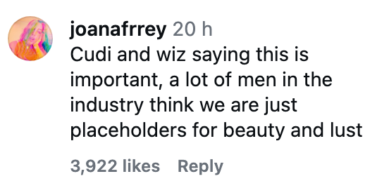 This is reminding me of that thing Harry Styles said one time… "I love when men aren’t woman haters," wrote another, echoed by someone else who said: "This is what healed masculinity looks like." "Men who actually like and respect women and their impact 👏🏼👏🏼👏🏼," another similar comment read. You can find Cudi and Wiz's full conversation on Big Bro here.