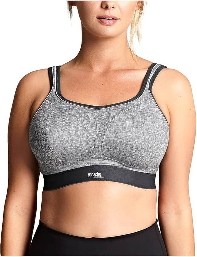 Promising reviews: "38F here and struggle with non-wired sports bras. Panache is usually my go-to, so I figured I'd try this one. Kinda love it. The band is tight enough to provide support, and it doesn't feel like it's around my belly button. No hard separator to prevent sweaty uniboob, but there is some definition. Figured I'd share for all those in search of the same..." —Amazon Customer