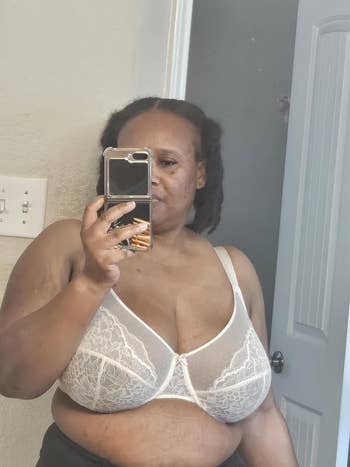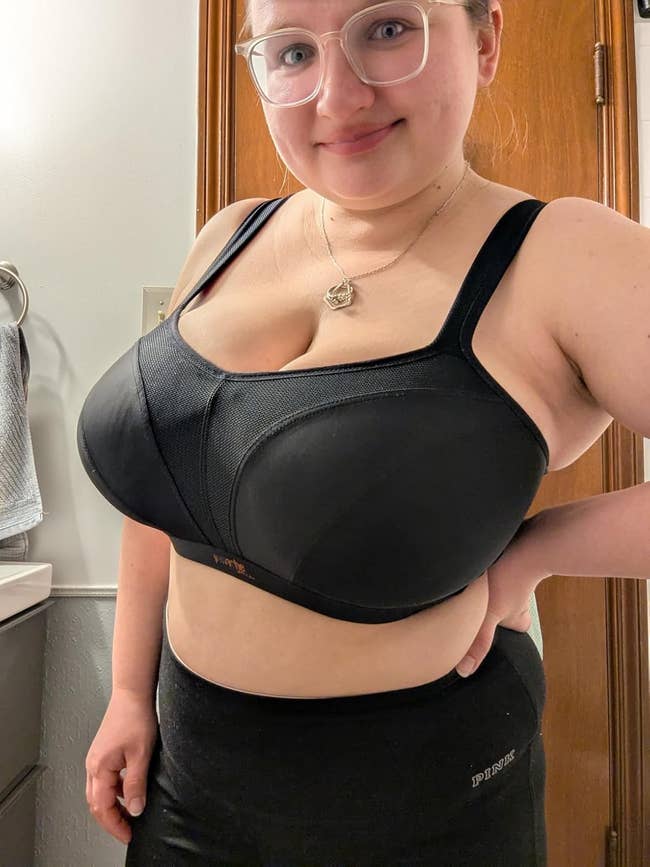 "I love this bra! I am 136 pounds and wear a 34F/34DDD, and this bra is so supportive. And it makes [my boobs] look good too, which is a plus because some bras make your boobs look weird lol. This bra is so comfortable, and it has three hooks instead of two, which is a big deal for me. I’ll definitely buy more." —Chelsea Belcher
