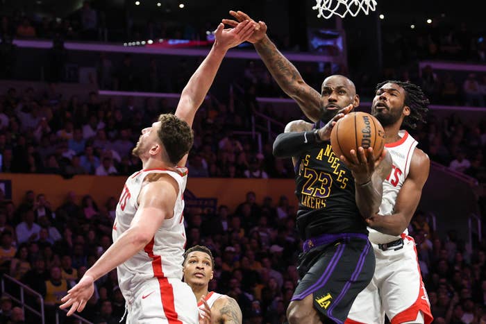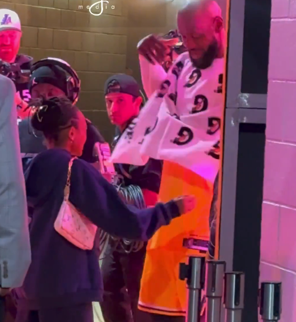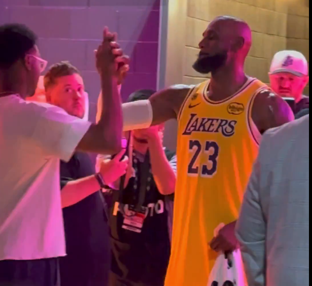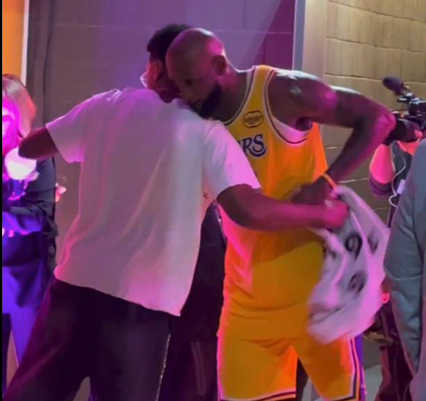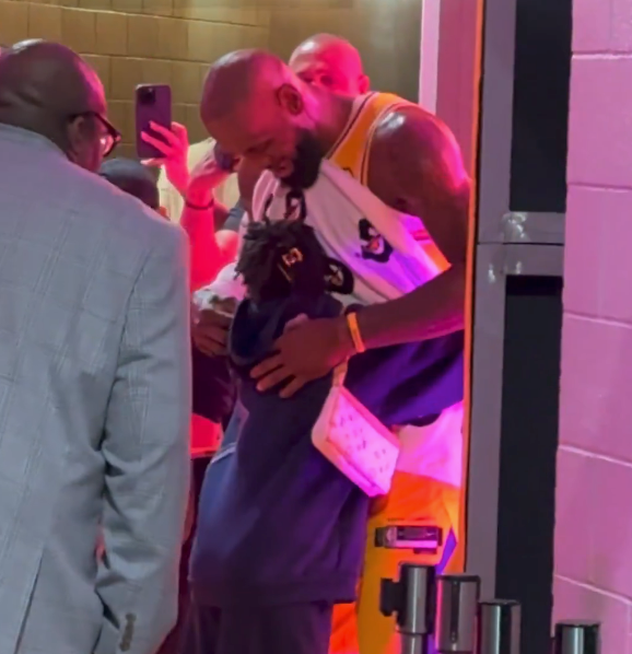 LeBron James shares a special moment with his family after winning Game 1 in LA. #Lakeshow pic.twitter.com/KLnZXIiOqu