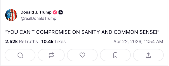 The White House’s social media account was mocked on Wednesday after it reposted a puzzling Truth Social comment by Donald Trump. The message was brief for the president ― just eight words ― but was in his trademark all-caps and lacked any apparent context. “YOU CAN’T COMPROMISE ON SANITY AND COMMON SENSE!” he wrote. All-caps messages like the one Trump posted often come across as rude, like the poster is shouting. Still, the White House social media team faithfully reprinted the capital lettering when it quoted Trump’s message on X, following up with a fawning “So true, Mr. President!” “YOU CAN’T COMPROMISE ON SANITY AND COMMON SENSE!”So true, Mr. President! pic.twitter.com/ui5yZvGjEu But amid ongoing speculation about Trump’s cognitive and physical health, lots of social media users had a different reaction to the post: Mockery. Brutal mockery. In fact, one woman couldn’t believe the White House let such an obvious target for sarcastic reactions fall through the cracks. Wait, what? Who cleared that with a straight face? 😂 https://t.co/I5sNUjJczb Others just laid into the White House. Then what the fuck are you still doing here? https://t.co/xZupAX2JCd The USA sure as fuck did https://t.co/8slHcVu3EO sAniTy & cOmMoN sEnSe. From this administration? Piggy, please 🤡That’s enough twitter for today, y’all. 🥴 https://t.co/LYlX08jaea pic.twitter.com/W31RRyhRK6 🤣 if only it all were not so terrifying. https://t.co/9aXmkWNXnY By entering your email and clicking Sign Up, you're agreeing to let us send you customized marketing messages about us and our advertising partners. You are also agreeing to our Terms of Service and Privacy Policy.