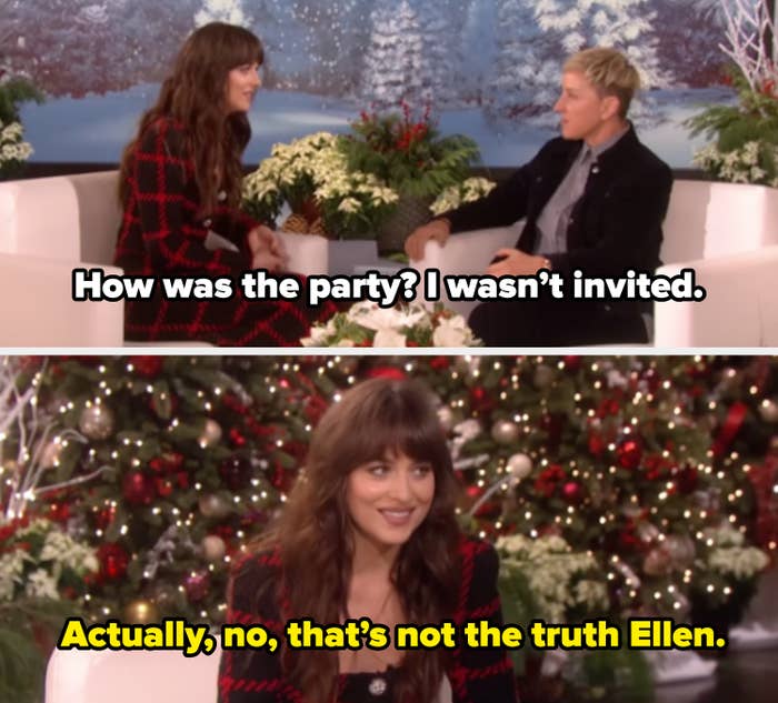 Dakota: Actually, no, that’s not the truth Ellen. You were invited. Last time I was on the show, last year, you gave me a bunch of shit about not inviting you, but I didn’t know you wanted to be invited.