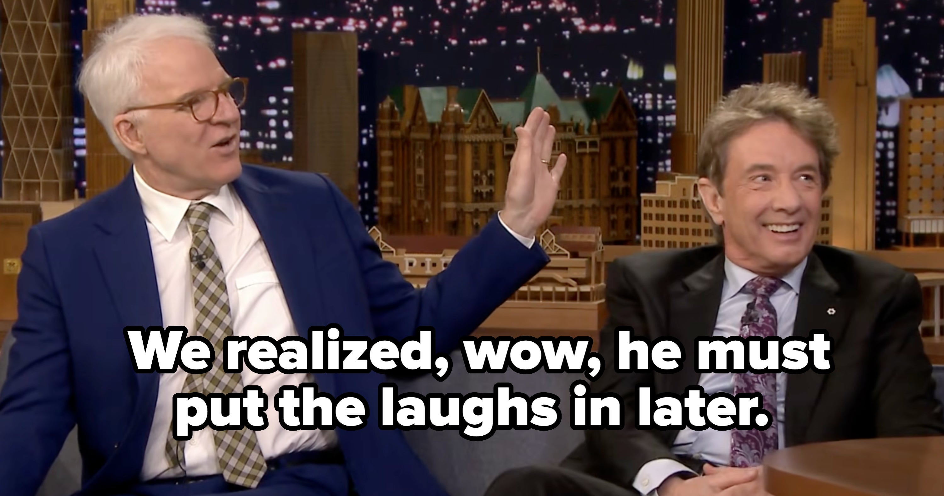 Steve: Actually, Marty and I learned from your show. We were backstage watching the monologue and we realized, wow, he must put the laughs in later.