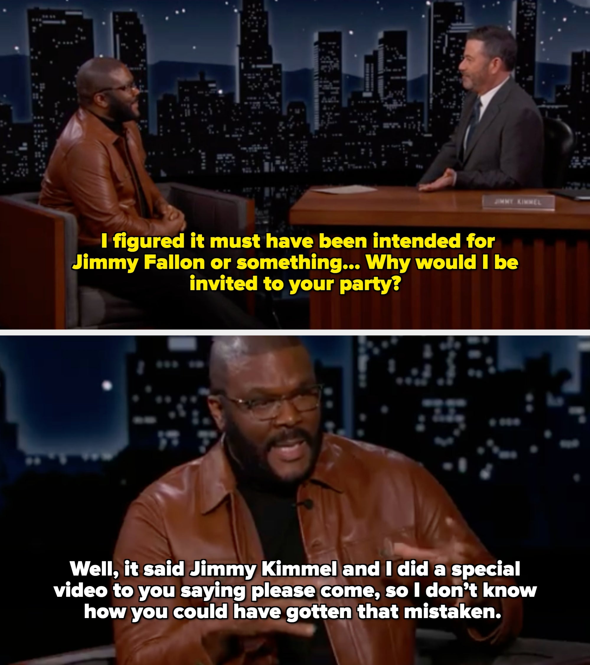 Tyler: Well, it said Jimmy Kimmel and I did a special video to you, saying please come, so I don’t know how you could have gotten that mistaken.