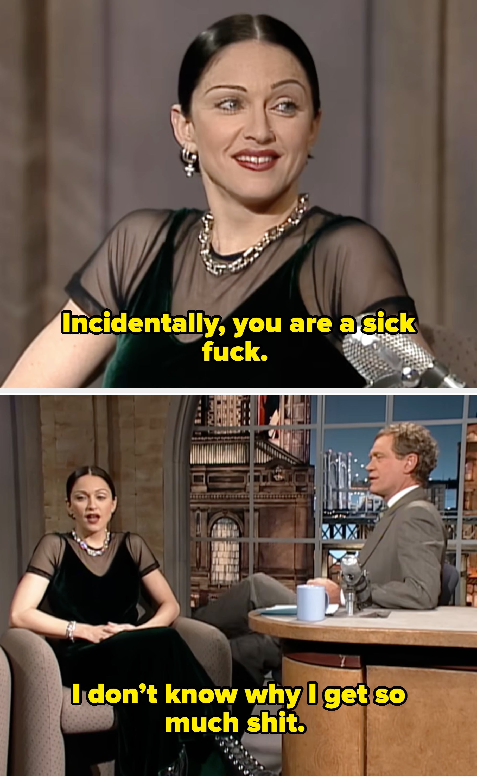 Madonna: Incidentally, you are a sick fuck. I don’t know why I get so much shit.