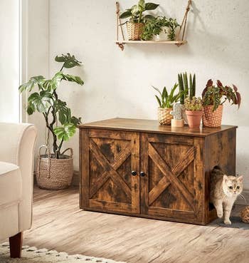 We hope you love our recommendations! While every product is independently chosen by our editors, BuzzFeed and our publishing partners may collect a share of sales or other compensation from the links on this page. You can read more about how our affiliate partnerships work in our Editorial Standards & Ethics Guide. Protect your peace and conceal those unappealing areas immediately. Reviewers also use this as a media console to store games and electronics, too. Like I said...genius! Promising reviews: "I love this piece. Before, everyone in the family would come in and throw their shoes off and the area was a mess. Now everyone takes time to put their shoes in this and the area looks so nice. I’ve had many compliments on it." —Vicki Davis "I’ve had open shoe racks and the shoes were always falling out. Now all my shoes are contained and organized and hidden in a nice cabinet that’s low profile." —Kirsten Soquel Covogoods is a Utah-based, woman-founded small business that specializes in storage solutions crafted from up-cycled books. Promising review: "We absolutely love our CovoBox. It fits perfectly into our cabinet, and the cable modem/router, AppleTV, and external hard drive, and their various cables are now cleverly disguised as Harry Potter books 1–7. Great customer service, quick delivery, and a fabulous product. Two thumbs way, way up!" —John Grace Get it from Covogoods on Etsy for $31.50+ (originally $42; available in various customizations and sizes) OR from Amazon Handmade for $39+ (you'll choose customizations before adding to your cart). Promising review: "This is a very handy item. It fits perfectly in my laundry area. Easy to assemble and to use. A must if you like to be organized and you don't have a lot of cabinets to do so. I am very happy with this purchase!" —Amazon Customer Get it from Amazon for $22.99+ (available in five colors). Promising reviews: "This is the laundry basket we have on top of our dryer for whites. It is attractive, holds up nicely and if we have people over, they do not need to see our laundry displayed. Love it!" —Karen R. "Wow very thick and sturdy! I’m quite surprised. Love it for my nursery laundry basket for all the toys. The color is just as photo shows, complementary for all decor types. Good value for the money!" —Ichi Ban Get it from Amazon for $22.99+ (available in four sizes and five colors). One pint covers 100 square feet of brick surface. Note: The paint must be diluted at at least a 1:2 ratio with water to achieve full coverage! Promising review: "This is amazing!!!!! It looks like a different fireplace. I have been looking at a horrible grout repair that the previous owners did for 20 years. I did this in about two hours!!!!!! This product is fast, it's easy to use, easy to clean up, and inexpensive." —Denise Get a pint from Amazon for $21.37 (available in larger sizes). And grab a sleek cable sleeve (aka a wire cover) while you're at it! Promising review: "My cords look so much neater now. I also used a cord protector to bind up my cords. My surge protector fit nicely in the box. Very happy with my purchase." —Amazon Customer Get a two-pack from Amazon for $29.99 (available in three colors). No tools required! It comes with a two-way clamping design that works on both horizontal and vertical surfaces. It's compatible with desks that are up to 3.1 inches thick. BedShelfie is a POC-owned small business that focuses on space-saving solutions for the home. Promising review: "First impression of the CarryUp, the build of it is solid and felt heavy. The weight of it made me confident it will hold up well and last me a long time. Overall setup was a breeze. No tools needed at all. One sentence that sums up this product for me ... Simple and effective!!!!! If you have messy cords underneath your desk then don't think, just buy this product." —Eddie Sadiwa Get it from Amazon for $24.99 (available in dark grey or cream). Promising review: "So easy to put together I could put it together with my eyes closed. Fit amazingly perfectly between the tub and the toilet and it has created so much more space and my bathroom is no longer cluttered because of this product." —COS45B Get it from Amazon for $24.58 (available in white or black). OK, so painting your concrete patio may not sound like the easiest upgrade but if you're no stranger to painting and want a big impact, give it a try! Promising review: "Works great. Used it in the basement for a quick, simple, inexpensive upgrade to brighten up the floor a bit and give the cement a clean look. Did a fairly good job filling in some of the hairline cracks as well." —T Get a gallon from Amazon for $35 (available in silver gray or slate gray). There's a removable divider inside depending on how large your litter box is. You could keep the divider in and use the other side to store bags of cat litter, the scooper, etc.! Promising reviews: "I absolutely, LOVE this litter box cabinet. I used to keep it in my closet until noticing my clothes would have a chalky film on them. This is perfect!! Not only does it hide the box itself, but it helps contain any smells that are beginning to emanate from the box. I clean it out every other day and have never noticed any odors. I also took out the divider, because my box was a few inches too long. All changing supplies are kept inside, so it works out great! I HIGHLY recommend, this litter box cabinet!!" —Angie "This is the perfect way to conceal a litter box as well as the odors and dust that come with them. I have noticed a significant difference in the air quality in my home, it is as if I don't even have a litter box." —Annie Get it from Wayfair for $79.99+ (originally $82.99+; available in five colors). While restoring a finish isn't quite the same as completely refinishing a piece, it takes much less time and can still make furniture (and floors, front doors, and kitchen cabinets) look magically new again. Promising review: 