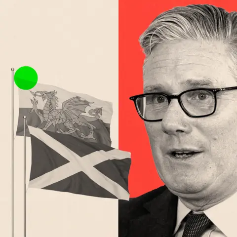 "We're living the dream," a minister jokes. Labour might have to rely on black humour over the next couple of weeks. Each day brings a vast set of elections closer - local tests in England, and national ballots in Wales and Scotland - votes that another cabinet minister frets "will be a disaster". We've been travelling around Wales this week, and Scotland last week, talking to the politicians vying for power, and the most important people of all - the public who'll make the choice on 7 May. Just when Labour needs to be going hammer and tongs in a campaign, instead, almost every day brings fresh embarrassment to the prime minister over his decision to give Lord Mandelson one of the finest jobs in the land - our man in Washington. Ructions in Whitehall. Rancour in Labour. A sense the government doesn't seem to have a grip. How big is the impact in Wales and Scotland of Sir Keir Starmer's woes? "It's just so huge," says a senior Labour MP who's been knocking on voters' doors in recent days. But these elections aren't remotely all about the government's recent horror show - we'll come to that in a second. Voters will decide who makes important devolved decisions affecting the lives of millions of people - the kind of schools kids go to; the standard of the care patients receive when they are sick; even income tax rates. Both the Labour administration in Cardiff and the SNP government in Edinburgh have been in charge for a remarkably long time - Labour since 1999, the SNP since 2007. It's perhaps not surprising, then, that voters we met in both countries expressed a similar level of disillusion with the status quo, frustration with a patchy track record on public services, and a sense devolution itself has not been all it was cracked up to be. The two countries are poised to make very different decisions on what's next. In Wales, it feels like Labour's time is more or less up. Canvassers report back praise on the doorstep for how Starmer held off from going to war with the US in Iran. But beyond that, the mood is bleak. One party source tells me "it's been a long time coming - the failures of the Welsh government keep coming up on the doors". In the blazing spring sunshine on a Swansea rooftop, Welsh First Minister Eluned Morgan tells me she'll keep "fighting and fighting", but accepts the election might be so tough for Labour that she could lose her seat. I don't remember covering another election where a party leader admitted their own perch in Parliament might disappear. Don't underestimate how totemic a Labour loss would be if it happens. The party has been winning in Wales for a century. Plaid Cymru leader, Rhun ap Iorwerth, and Dan Thomas of Reform are bouncing around the country, both believing they have a real shot at power. If either wins it would be the first time the post of first minister has been under their party's stripe - and the first time anyone other than a Labour politician has been in charge. Be prepared for haggling after the results themselves, mind. A new proportional voting system in Wales makes it unlikely any one party will have a majority this time around, and it's hard to make accurate predictions. Plaid's ap Iorwerth says he'd happily run a minority government - a calculation that the Lib Dems, Greens and Labour would allow Plaid to form an administration, because they'd never dream of backing Reform. Tory leader Darren Millar has suggested he'd be open to working with Reform, while Reform leader Thomas - who also seems to be relishing the campaign - insists he's campaigning to win a majority. Let's see. There's also the possibility either Reform or Plaid wins the most seats, but the other wins the most votes. Under that headscratcher the party with the most seats would be the winner, theoretically, but you can already imagine the narrative of unfairness that the loser could spin. The old certainties have gone and parties who were tiny outfits not so long ago stand to gain. Several hundred miles away, the traditional order in Scotland was turned over in 2007, when the SNP stunned the political establishment by beating Labour in another of its spiritual homelands. The party has won every Holyrood election since. Despite all sorts of scandals and a less than glowing record on public services, it looks like voters will let them enter their 20th year of power. Scottish First Minister John Swinney is credited with restoring calm to the party after a crazy few years when its two big stars - Alex Salmond, then Nicola Sturgeon - crashed. Swinney told us last week he was "confident to predict" the SNP would win a majority, but as in Wales, the political system makes it hard for any one group to get over that threshold, and it's tough to make predictions. One Labour minister tells me they are "gobsmacked by [the SNP's] lack of expectation management". Reform is snapping at the heels of both the SNP and Labour, and looks to make big advances. Nigel Farage's party is campaigning hard on immigration, particularly in Glasgow where a high number of asylum seekers have been housed. That said, Reform's rivals have described their campaign as a "binfire", with candidates lost over offensive views and Scottish party leader Malcolm Offord having to apologise for a homophobic joke years ago. The Greens have plenty of new members, though the zip of the party in England doesn't feel matched here following a bruising experience of being in government with the SNP. Meanwhile, Lib Dem and Conservative leaders' campaigns have been very on-brand - the former making frangipane tarts at a cookery school in Edinburgh's fancy New Town; the latter knocking doors alongside a labrador in a comfortable Glasgow suburb. No longer the big players they once were, the Lib Dems and Tories are trying to max out on a second ballot where voters select a party to represent their whole area, not the individual politician for their constituency - known as the "peach vote" because it's cast on a peach-coloured 