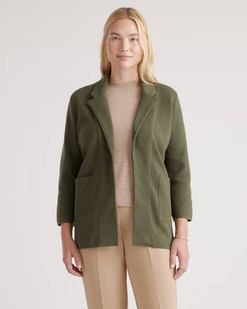 Promising review: "Favorite blazer. I wear it to dress up my outfits. I got a large, so I can wear thicker sweaters underneath it. Such a great buy. It is so stylish and kept me warm in Paris during autumn nights. I really appreciate how beautiful and simple this blazer is. Upkeep is also so super easy." —Linda