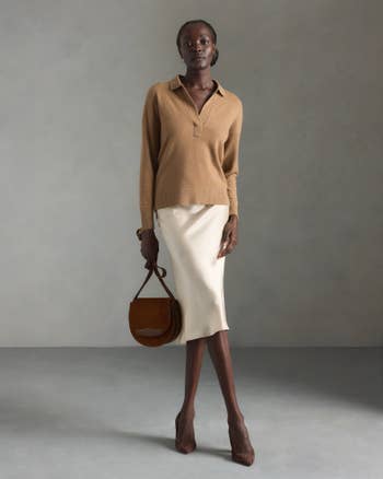Promising review: "Such a classic top! It’s one of my favorites that I’ve gotten from Quince. It’s perfect for spring, and I can’t wait to wear it under a sweater in the wintertime." —Morgan J.