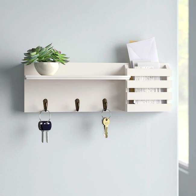 Promising review: "I’m really happy with this wall organizer. It keeps everything in one place and has made it so much easier to grab my keys on the way out. The hooks are sturdy and hold several sets without feeling flimsy, and the shelf space is perfect for mail, sunglasses, or small everyday items. It looks clean and modern on the wall and doesn’t feel bulky. Installation was straightforward, and once it was up, it instantly made the space feel more organized. Definitely a practical and stylish addition to the entryway." —Anonymous