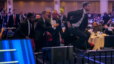US President Donald Trump has been rushed from the White House Correspondents' dinner as gunfire was heard inside a Washington DC hotel. Some of America's most high-profile politicians, diplomats and journalists were gathered in the Washington Hilton ballroom when they were forced to take cover under tables. The suspect has been identified as Cole Tomas Allen, 31, of Torrance, California, US media report - he will be formally charged in court on Monday. One US security agent was injured and received treatment in hospital, authorities said. Here's how the night played out โ in pictures. The BBC's Gary O'Donoghue describes the moment he and others dived for cover as shots rang out at the venue. Police say a man charged security outside of the dining room and was armed with multiple weapons. The US president was midway through a conversation before loud bangs rang out at the venue and he was quickly escorted to safety. Some MAHA voters are frustrated with Kennedy's concessions on key issues, as he pivots away from vaccines. King Charles and Queen Camilla will meet with President Donald Trump during a four-day state visit.
