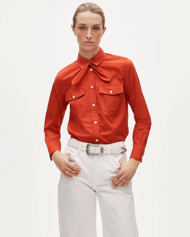 Promising review: "A classic fit elevated by an eyelet collar and tie — dressy enough to feel special, yet entirely at home under a tailored suit for the office. The pure cotton is practical, the price was right, and it softens workwear without veering into fussy." —PatsyB