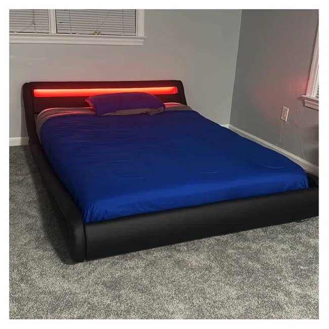 Promising review: "This was super easy to put together and the LED light in the headboard is so cool! It comes with a remote and you can change the pattern in which the colors on the LED is displayed!" —Anonymous