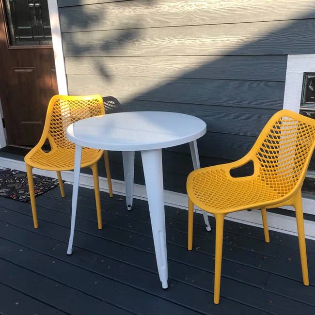 Promising reviews: "I love these chairs! They are comfortable, lightweight yet very sturdy. Being able to stack them will make it so much easier to power wash and clean under the table. I like them so much. I’m ordering another set. I love, especially the way the water runs right through the chairs. You won’t be disappointed!" —Diane