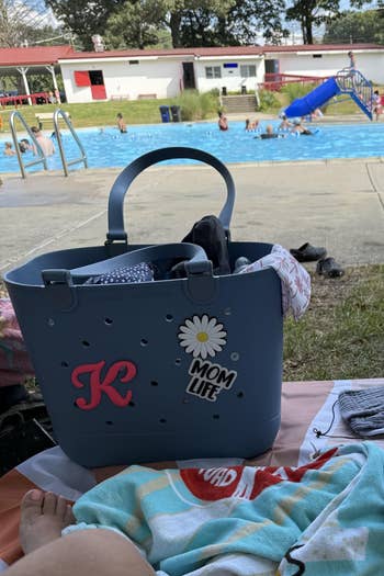 Promising review: "The best sports mom bag I’ve found! Not only is it cute, but it’s also completely functional. I love that it holds so much (the large is perfect for lots of stuff, but not overly huge. I can pack water bottles, snacks, sunscreen, books/Kindle, umbrella, and everything in between! I also love that I can personalize it with charms and stuff — the Bogg bag charms fit. Also, the fold-down straps are great. They don’t get in the way at all. I’ll also note that it’s super easy to clean. Just empty it and spray it out with a hose. Even the white has stayed clean. Love love love! Get this bag! You won’t regret it!" —Amoora