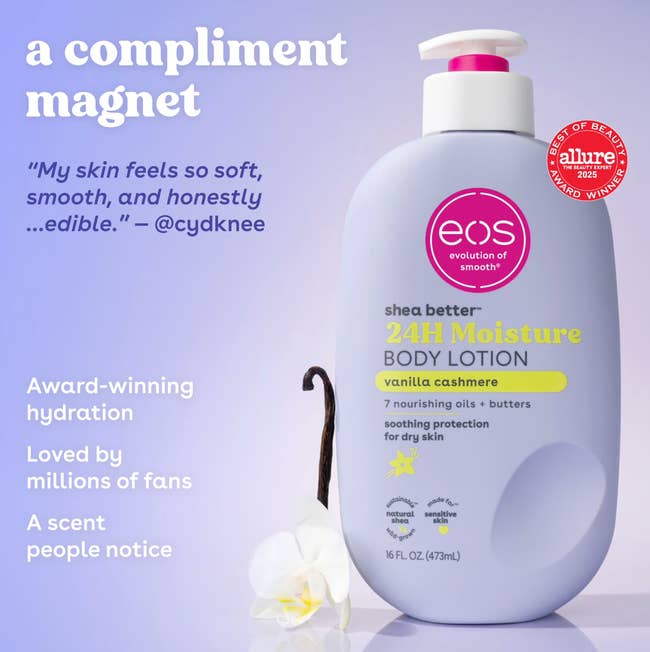 Promising review: "This is the best-smelling vanilla I have ever had the pleasure of smelling. For the first few weeks of using it, it became my personality. I still absolutely love it. This is the first kind of lotion I can put on my body that soaks in and doesn't feel 'icky.' I've tried other scents of Eos. They're all fantastic. It's just so soothing. TL;DR: the best scent and formula." —Kiki