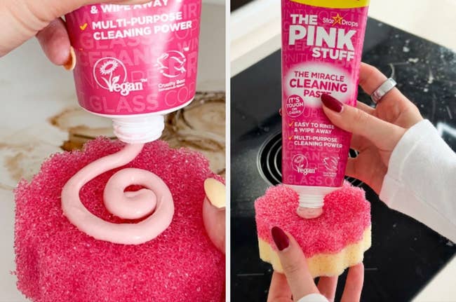We hope you love our recommendations! While every product is independently chosen by our editors, BuzzFeed and our publishing partners may collect a share of sales or other compensation from the links on this page. You can read more about how our affiliate partnerships work in our Editorial Standards & Ethics Guide. Including hands-free cleaning tablets for your garbage disposal, your washing machine, your dishwasher, *and* your water bottle. I'm a resident writer, cat mom, and obsessive online shopper who is passionate about quirky pet products, home decor, size-inclusive fashion, and, above all, perfumes. FYI, if you want to get a deep clean, you might need to do an initial few rounds of this stuff for optimal, sparkly results. After that, Wet and Forget is perfect for weekly maintenance, so you don't have to do that as often. Promising review: "I had a horrible gray ring in the bottom of my shower that was impossible to remove. I had tried the Dawn dish soap method (with a lot of scrubbing) and had even used toilet bowl cleaner to try to remove the soap scum. My next step was to tear out and replace the shower pan and tile. I figured this was my last chance. I ordered the Wet and Forget Shower Spray and really coated the shower walls and floor pan and walked away. I CANNOT begin to tell you how happy I was to rinse down the walls sometime later and watch all that crud roll right down the drain!! This is the best product I have ever used in my life!! Works great and no toxic fumes!!" —Amazon Customer Get it from Amazon for $20.98 (available in two scents, a two-pack, and a refill size). Promising review: "I have never once written an Amazon review. Buy this now. I have lived in a place with hard water for three years and could not figure out how to remove the stains from our shower door. Removed all stains in five minutes. Smells like mint, pleasant, not chemically. Worth every penny." —Lauren H. Sutherland The head of the handle rotates 360 degrees to target hard-to-reach places, and there's a hole at the end of the handle so you can hang this to store. FYI, using a Magic Eraser with the scrubber handle helps it last up to five times longer! Promising review: "I love this thing! The handle makes it so much easier to wash the walls in my shower. No more grinding my knuckles against the shower wall as I'm cleaning it. Just a handle and an easy glide. They are thick and sturdy and the normal size of a Magic Eraser. I was hoping they would be thicker, but I'm okay with it. I'm definitely a fan and will buy it again!" —Dawne Get the handle and two Magic Erasers from Amazon for $12.94. Promising review: "These are a must for apartment move-outs, and the value for money is great. While these aren't as durable as I'd personally like (any significant scrubbing crumbles them), they get the job done when paper towels and elbow grease just can't. Pro-tip: Unless you're trying to attack a large area and only need a light touch, cut these sponges into thirds or quarters lengthwise for a more effective scrubbing experience! Direct pressure makes all the difference (but crumbles the sponges quickly), so this prevents the awkwardness of crumbled, dirty edges and a perfect untouched middle." —B Promising review: "Do you have a stinky garbage disposal? If so, get some of these. They are cheap, smell nice. And the foaming action really provides you with a visual they are cleaning the drain. After using these the garbage disposal seems smoother (fewer strange noises, like it's been lubricated). I'd recommend these over Plinks any day as I feel the Plinks only hide smells whereas these foaming packets actually clean the disposal."—Sugacookie Get a pack of four from Amazon for $7.60. Promising review: "This stuff is some magic sorcery. I’m not usually a fan of traditional cleaning products and tend to opt for natural-based cleaners. However, I had some soot over the fireplace that nothing would take off. Not only did it do a pretty dang good job on that…everything I’ve tried it on has gotten that item super clean with minimal scrubbing effort. Will always have on hand now. Got hard water stains off when CRL wouldn’t even get it clean and made the faucet look brand-new." —Kim Montero Promising review: "I’m really glad I did. This is so easy to use. It’s so quick and easy and removes really tough stains, and it smells great. I have already used it to clean the inside glass of the oven and to remove stubborn stains on my bathroom tiles that my regular bathroom cleaner couldn't remove. Really good product." —Amazon Customer Get it from Amazon for $10.99 (also available on its own without the sponge). It's super quick to install, and one cartridge can last up to three months! Promising review: "This is an excellent invention for keeping the toilet bowl fresh without a tablet that harms the flush seal. I was frequently replacing the seals in the tank but with this setup the seals last and last." —Awesome Guy If it starts to run low on battery, it'll automatically go back to its base to recharge. Reviewers do recommend keeping stray items like socks and cords off the floor before running this. Promising review: "This robo vacuum is incredible! I have three dogs and a cat; this vacuum is a time saver. I run it each day and it has done an incredible job of keeping pet hair, dirt and debris picked up in my home. Works well on carpet, hardwood, and tile floors. Wish I had purchased it sooner!" —t. hampton I have this stuff, and omg — it's a lifesaver for a house without a dishwasher. I use it for more than just dishes, too. It's amazing at cleaning my old gas stovetop, and scrubbing it down, which used to take me 30 minutes, takes closer to five, now. Get a foaming kit from Amazon for $12.99 (and check out the refills, which are available in three scents). The two-speed runs for about three hours on a single USB-C charge. It comes with seven scrubber heads. Promising review: "I recently