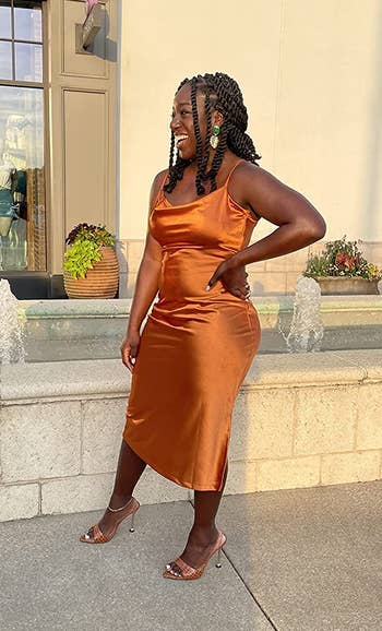 Promising reviews: "RUN to buy this dress. I bought it for a wedding and honestly wasn’t expecting much as I have never ordered from Cider before; however, the dress is BEAUTIFUL. It fits perfectly, and I felt so gorgeous the whole day; I got so many compliments on it with everyone asking where it was from. It’s the perfect length, and what I love is that it actually hugs my waist, which is what some silk dresses lack. Honestly, my favorite dress that I own!!" —Cider Customer