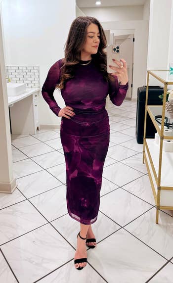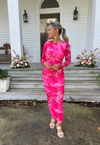 Reviewers say the material of this maxi-length mesh bodycon dress is thick, stretchy, and hugs their bodies perfectly — everyone's obsessed! It features long sleeves, a short side slit, and a gorgeous abstract floral print that turns the typical spring pattern up a notch.