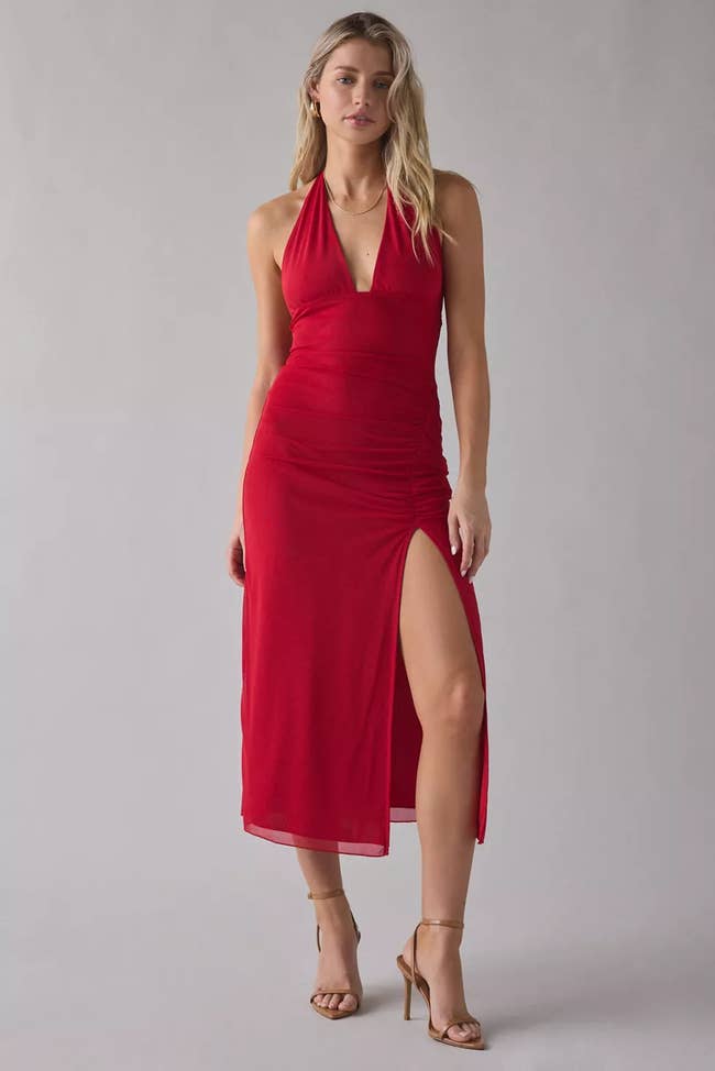 Talk about being the '💃' emoji in real life. This simple halter dress comes complete with a deep V neckline, a slit, and a radiant red color that somehow works perfectly in the middle of the day and in the middle of the night! The material is nice and comfy and breathable, too, so you'll have no issues spending the majority of the evening on the dance floor.